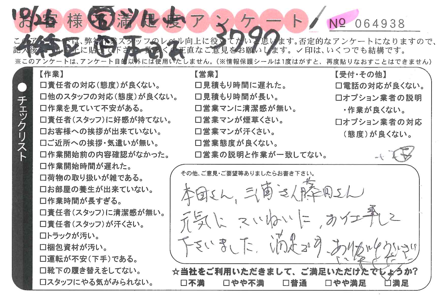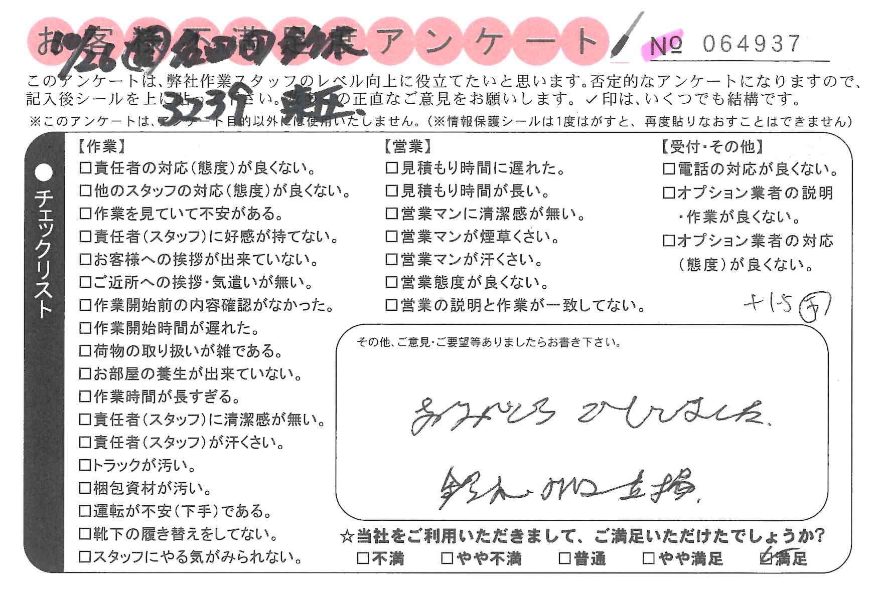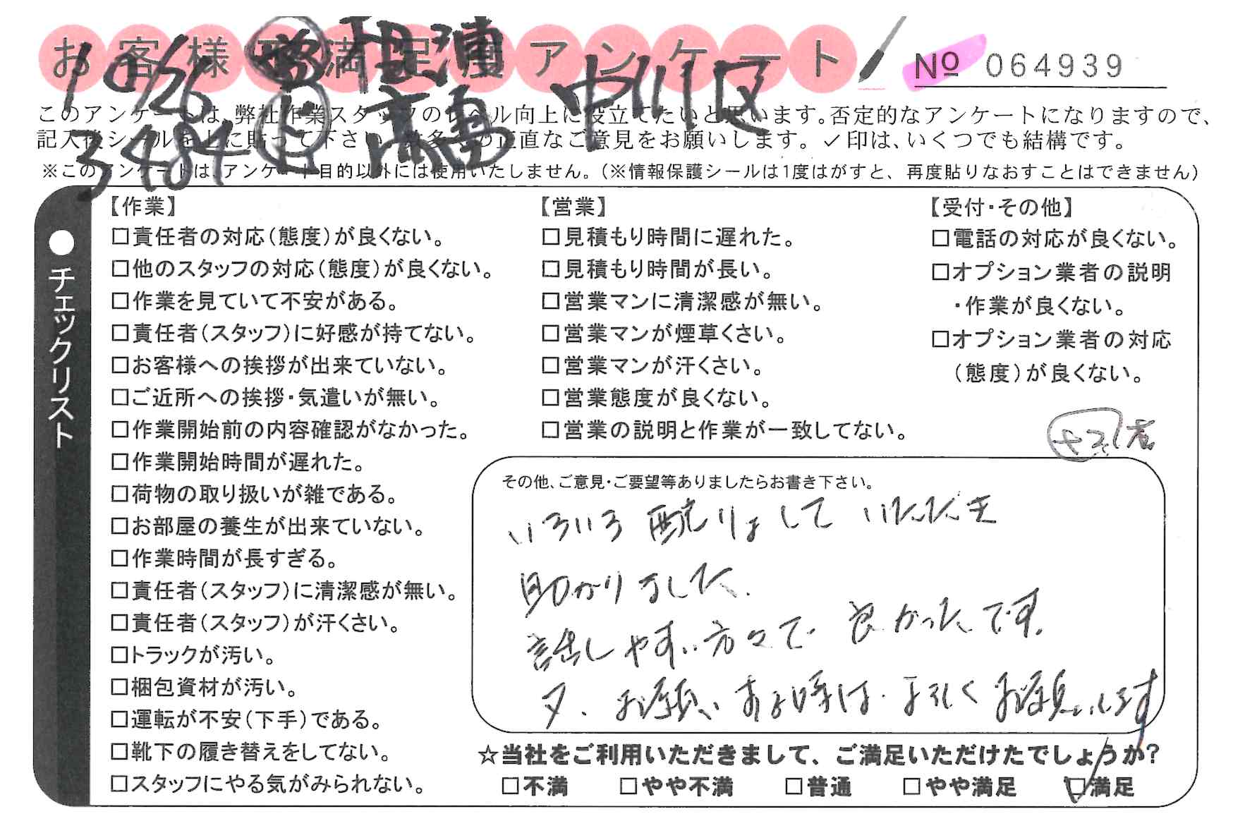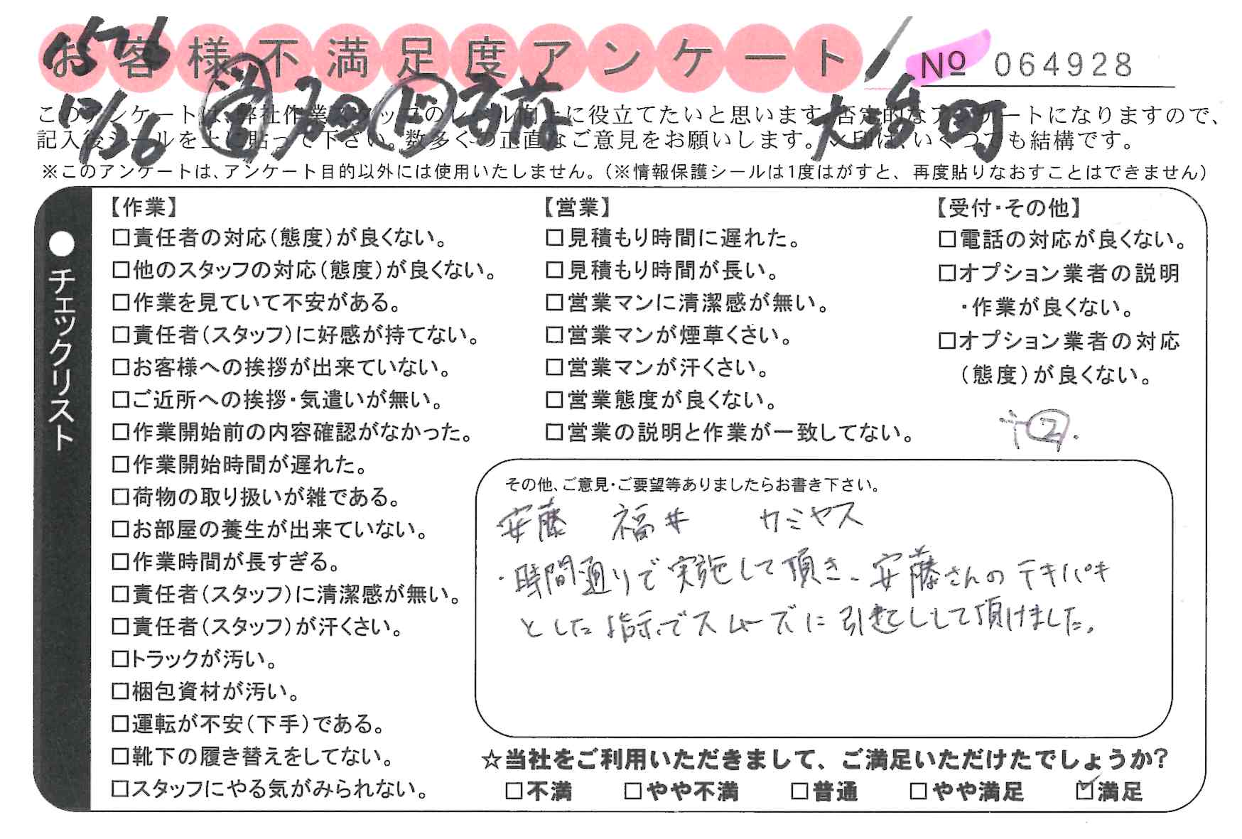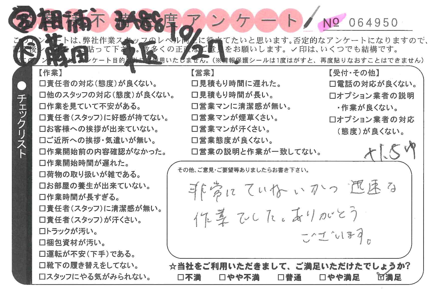 引越一番でお引越しをしていただいたお客様のうち、コメントいただいたアンケートを全て掲載しています。