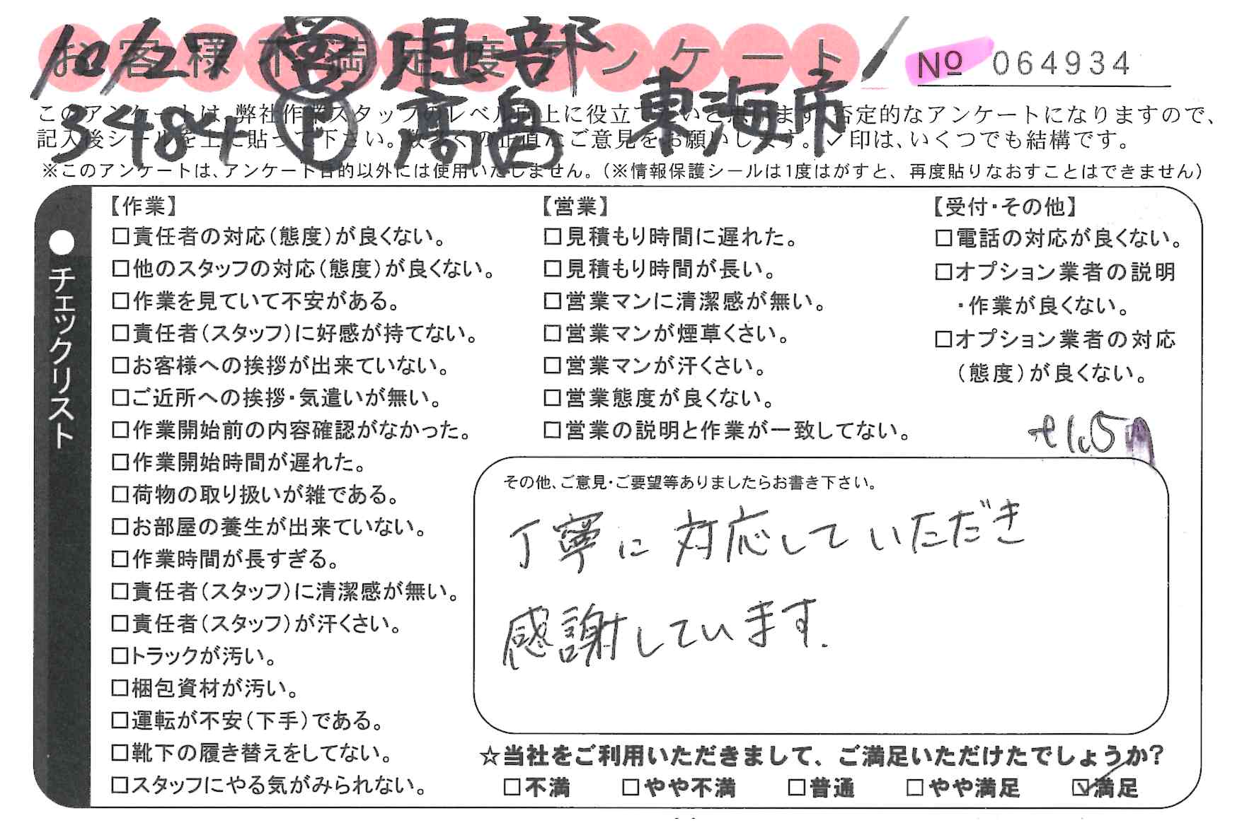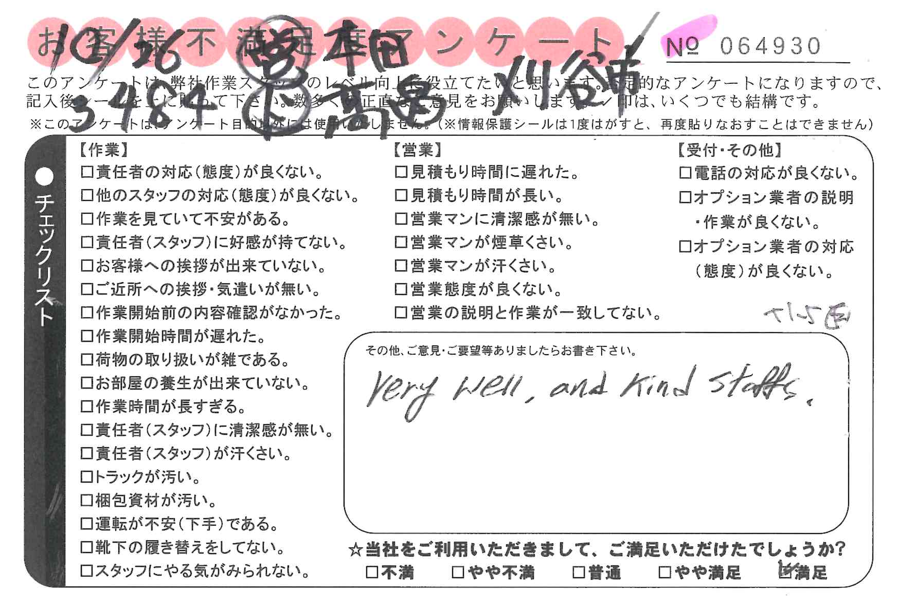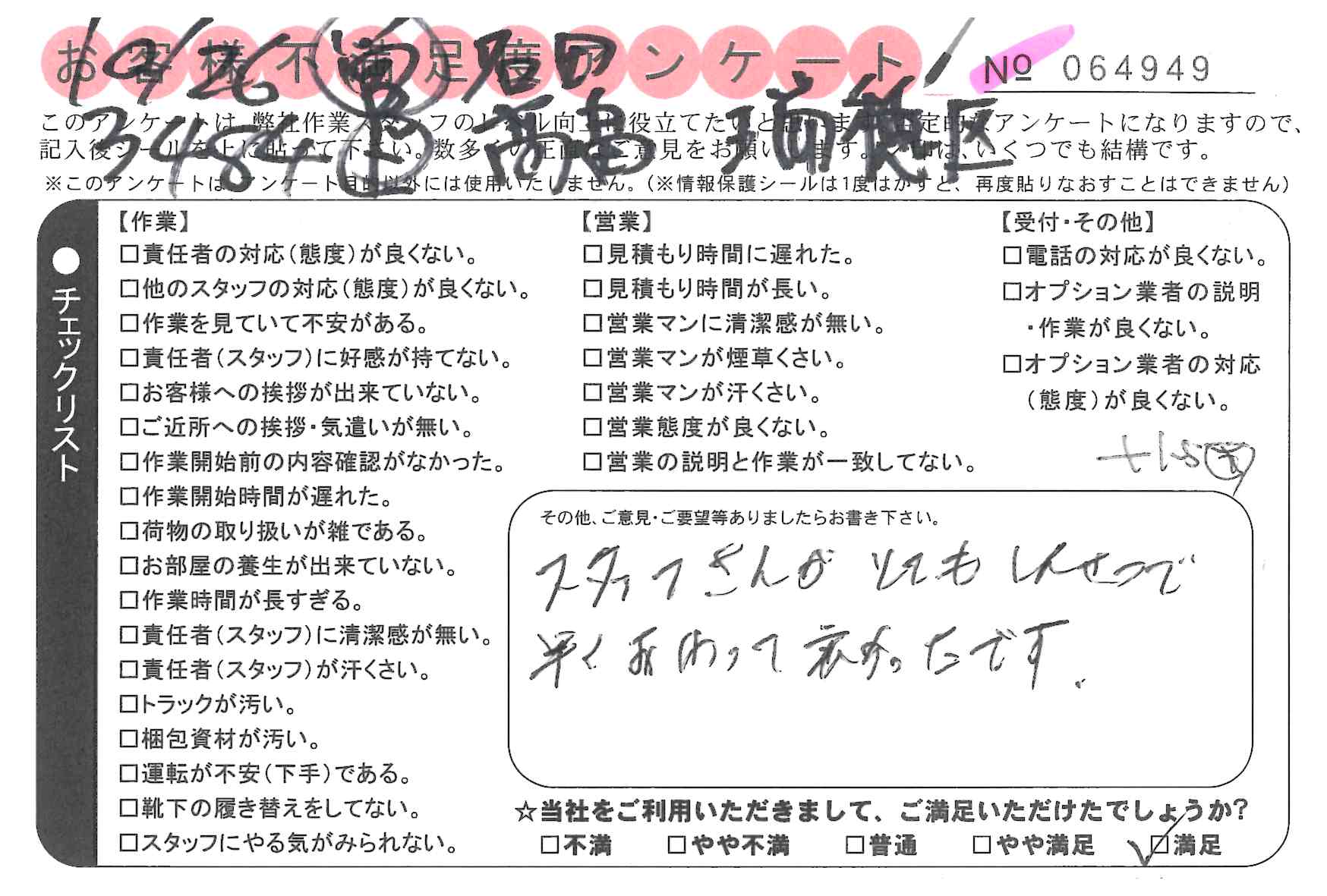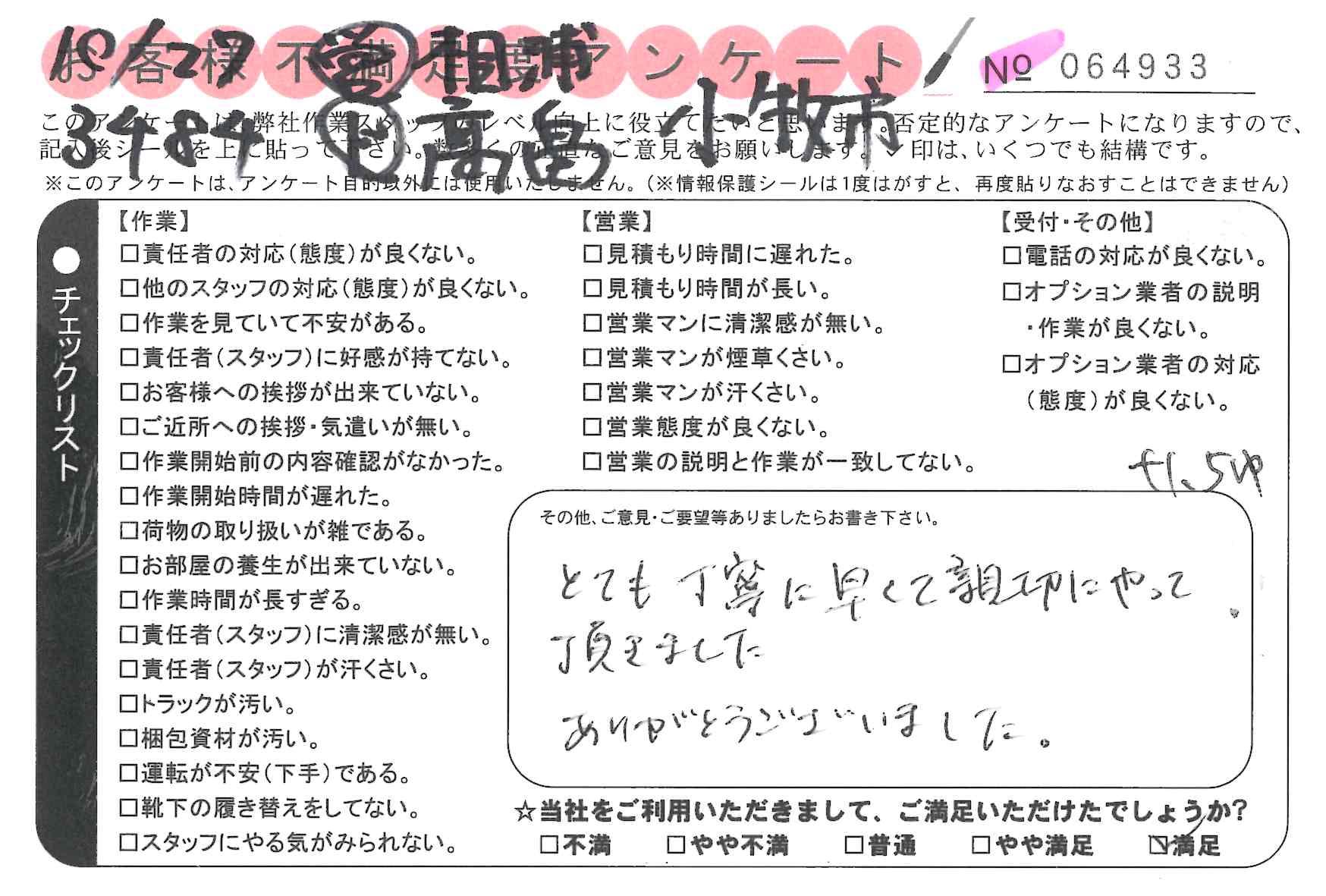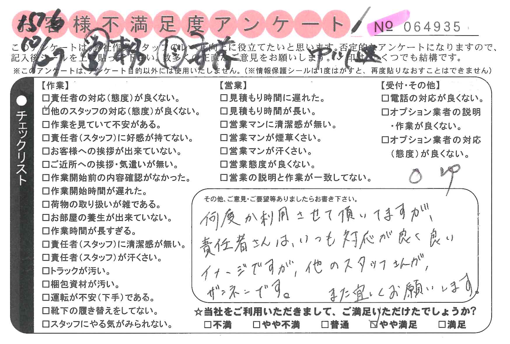 引越一番でお引越しをしていただいたお客様のうち、コメントいただいたアンケートを全て掲載しています。