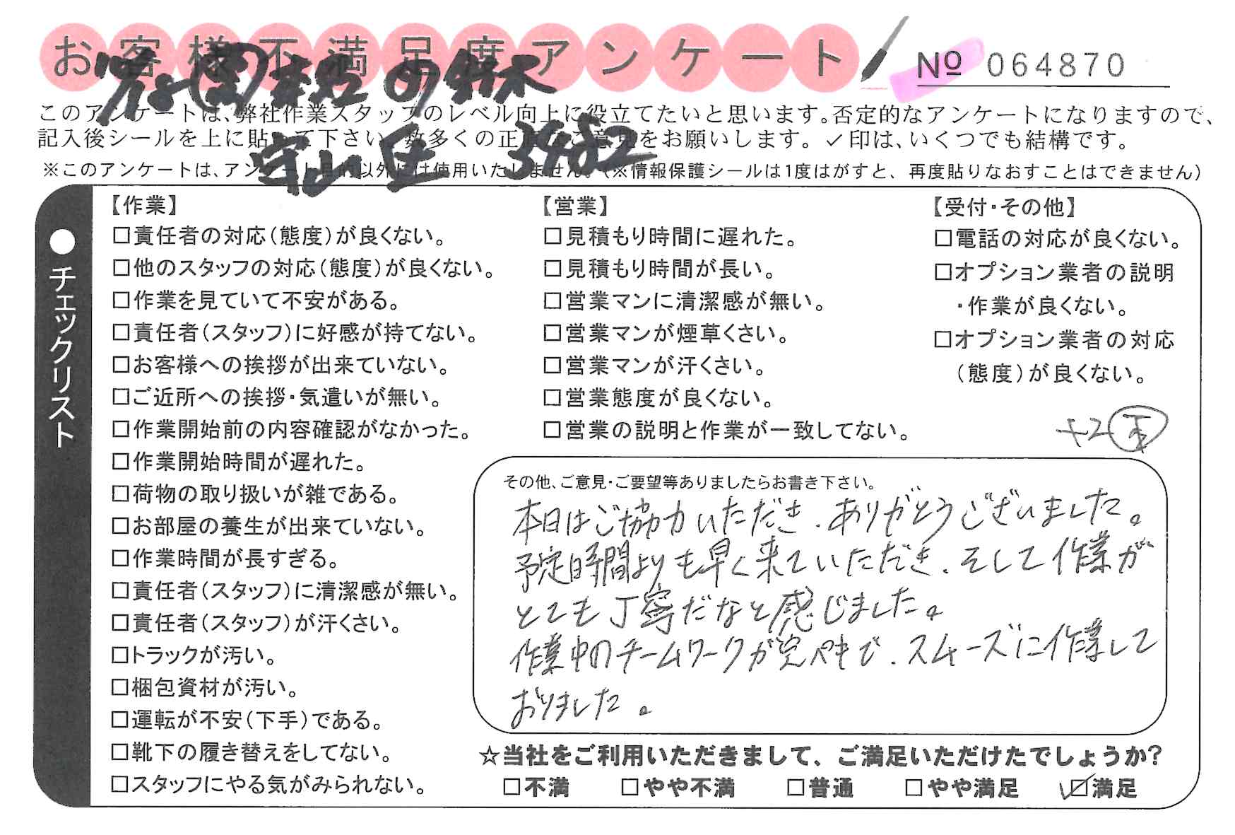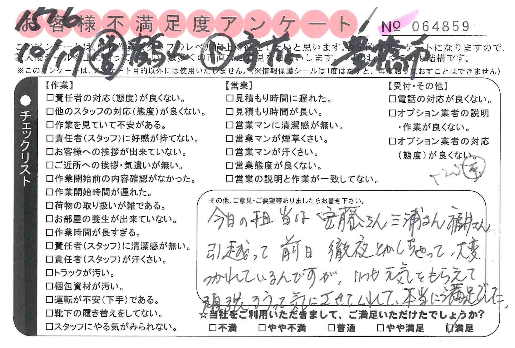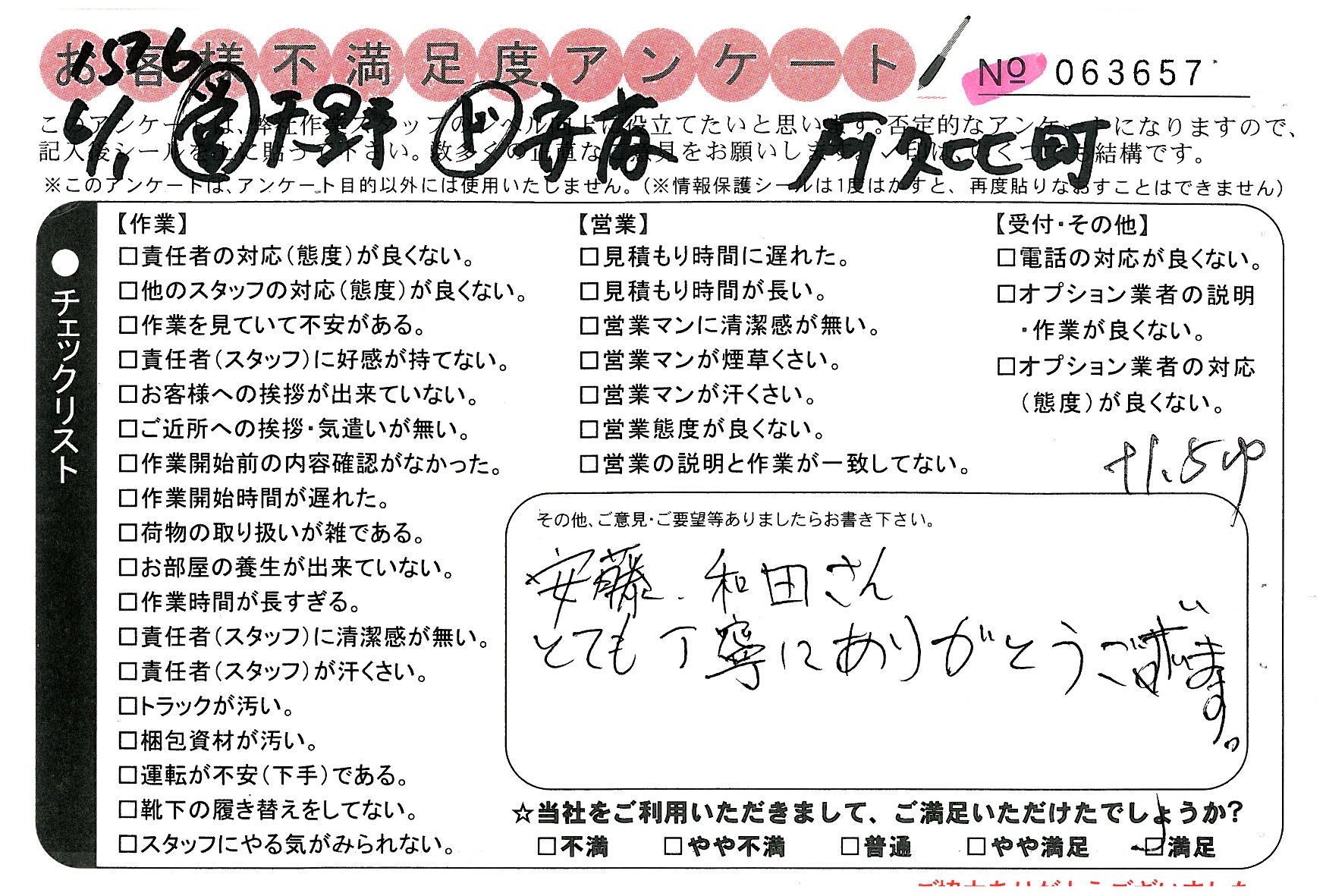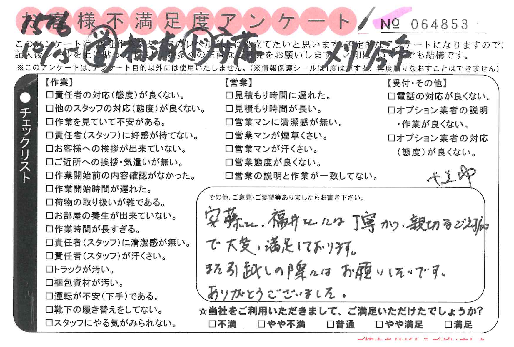 引越一番でお引越しをしていただいたお客様のうち、コメントいただいたアンケートを全て掲載しています。