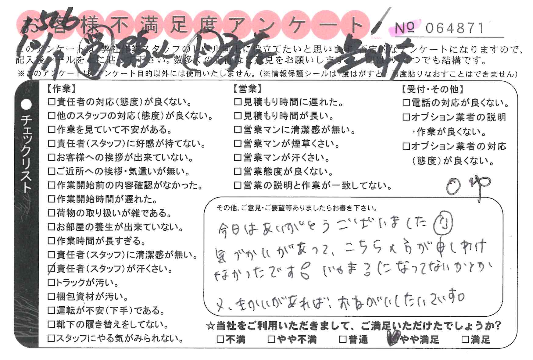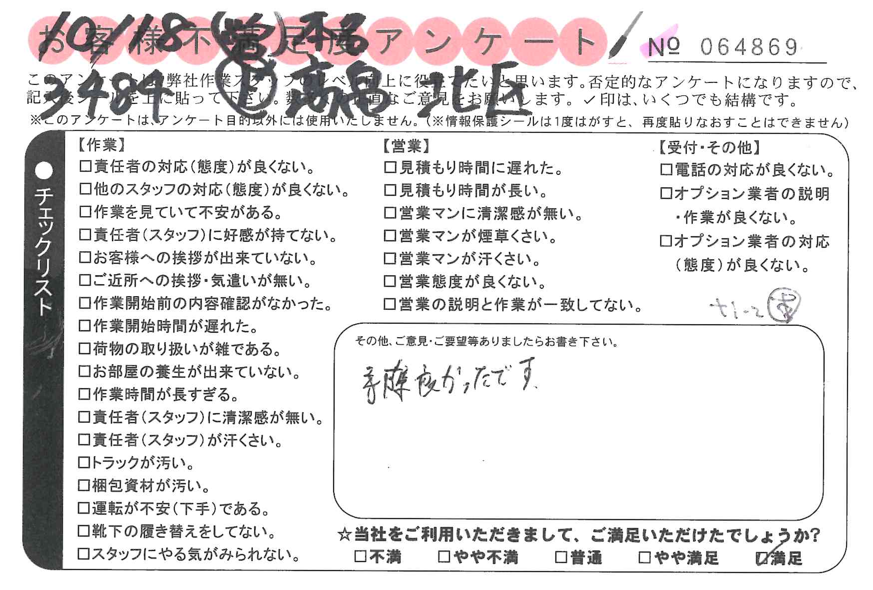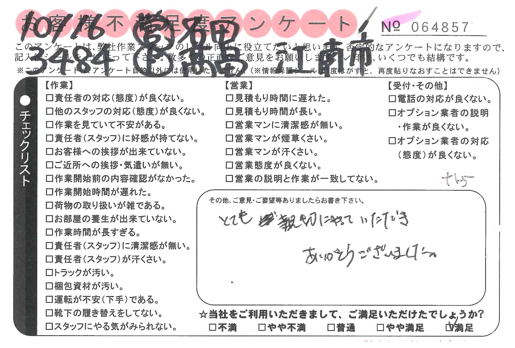 引越一番でお引越しをしていただいたお客様のうち、コメントいただいたアンケートを全て掲載しています。