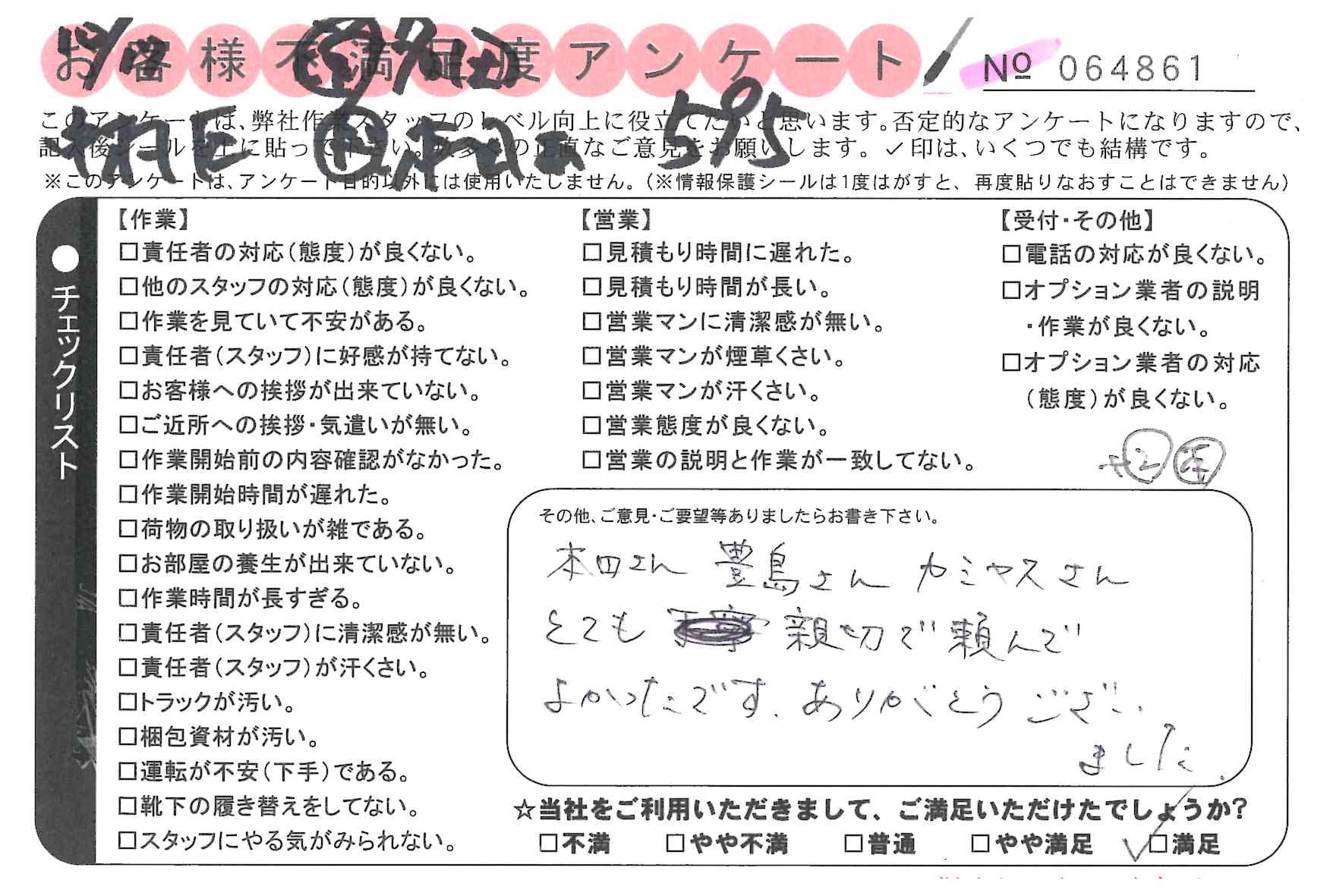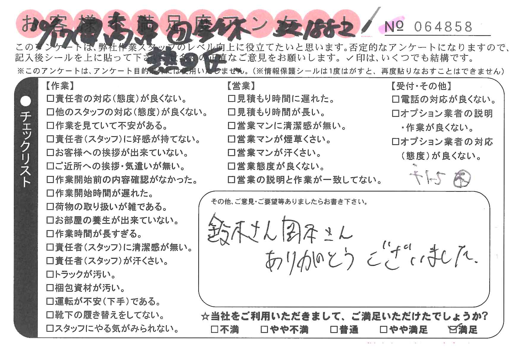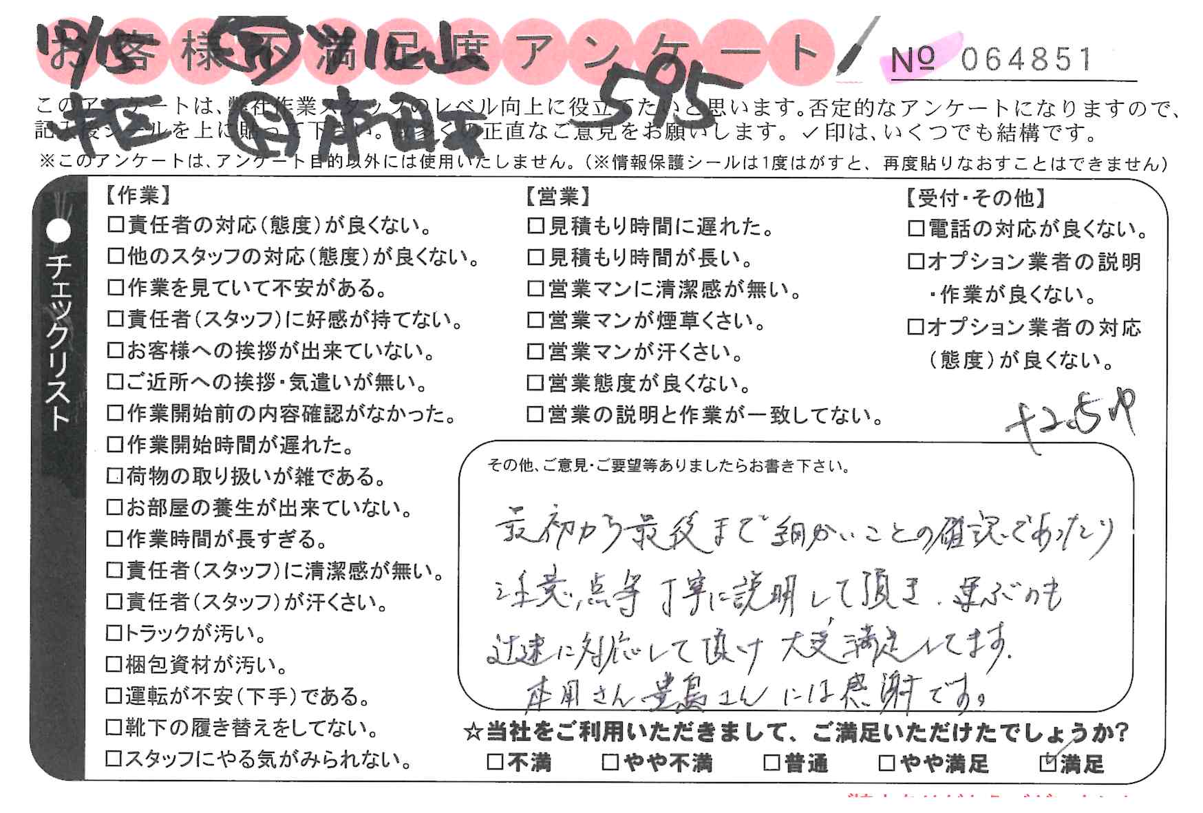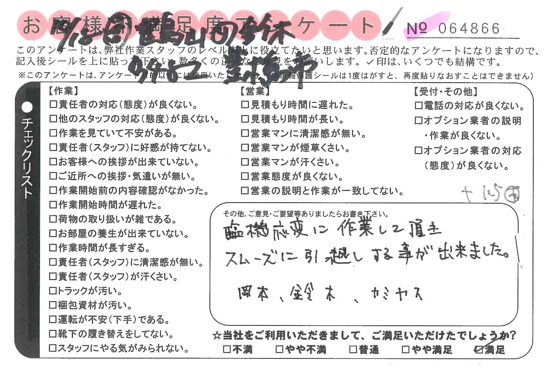 引越一番でお引越しをしていただいたお客様のうち、コメントいただいたアンケートを全て掲載しています。