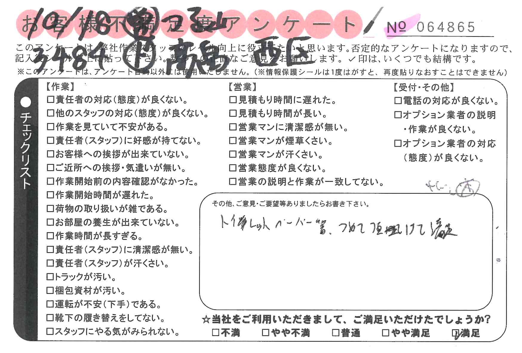 不満足度アンケートを行っている引越一番では、不評なアンケートも、好評なアンケートも全て掲載しています。