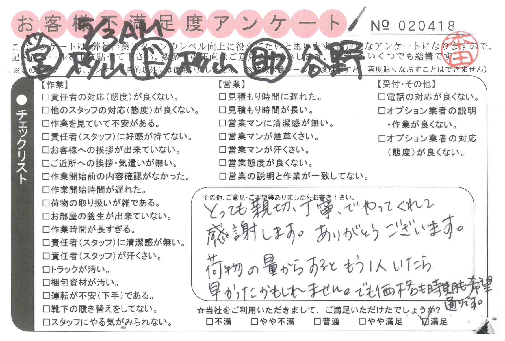 5/3 引越 営業:杉山 ドライバー:杉山 スタッフ:谷野