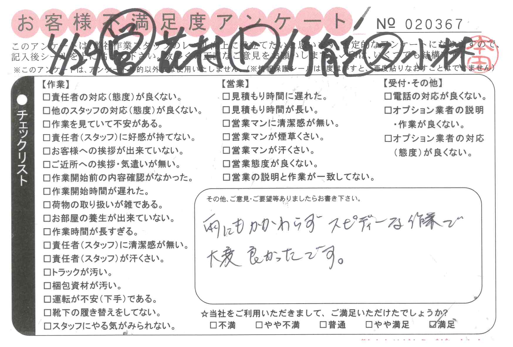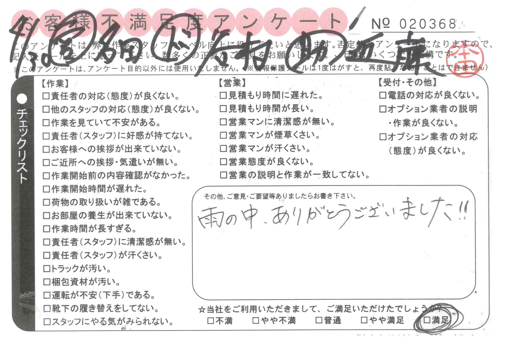 * 雨にもかかわらずスピーディーな作業で大変良かったです。